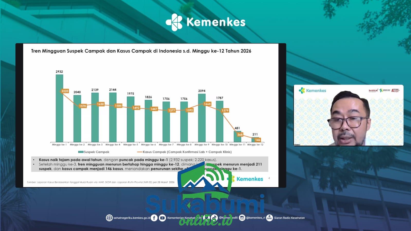 “Pada minggu ke-12 epidemiologi, itu kasusnya menurun menjadi 146 kasus dibandingkan dengan minggu ke-11. Minggu ke-11, 368 kasus. Dan kalau kita lihat pada minggu pertama tahun 2026 jumlah kasusnya itu 2.220. Jadi ketika kita membandingkan dari minggu pertama sampai dengan minggu ke-12, bisa kita lihat disini terjadi penurunan kurang lebih 93 persen,” kata Andi.