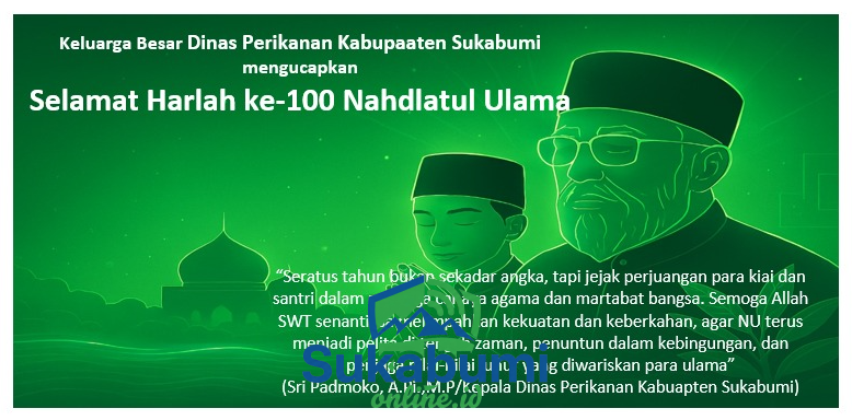 SukabumiOnline.Id,- Sukabumi, 31 Januari 2026 – Dalam semangat Sukabumi Mubarokah yang menjiwai gerak pembangunan daerah dan spiritualitas masyarakat, Keluarga Besar Dinas Perikanan Kabupaten Sukabumi menyampaikan penghormatan dan doa terbaik bagi Nahdlatul Ulama yang kini genap berusia satu abad. Seratus tahun NU bukan hanya sejarah, tetapi warisan perjuangan yang hidup dalam jiwa para kiai, santri, dan umat yang mencintai negeri ini.