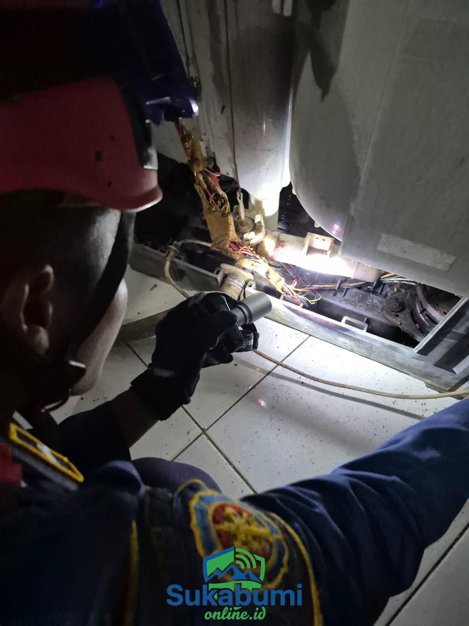 Tim Damkar Jampangkulon tiba dalam hitungan menit, membawa peralatan lengkap untuk evakuasi. Setelah membuka tutup mesin cuci, mereka menemukan sarang tikus yang cukup besar, menandakan hewan-hewan itu telah bersembunyi di tempat hangat dan gelap tersebut.